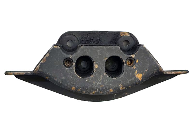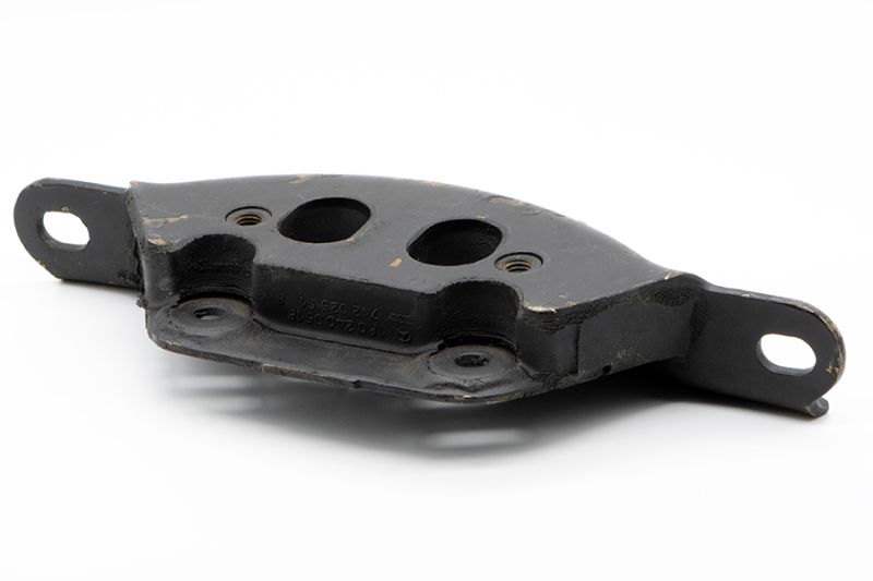 The suspension consists of two fairly strong metal plates - one attached to the rear cover of the gearbox and one in two lugs protruding from the chassis - molded together with a thick, resilient rubber. To protect the rubber from oil and road salt, the front of the bearing is shielded by a thin, separate plate.