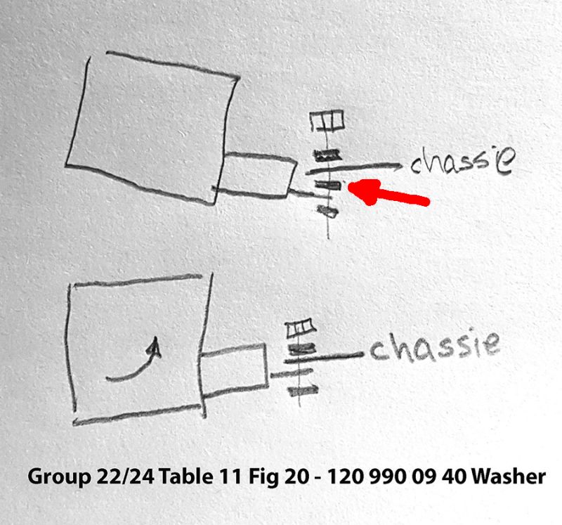 An interesting thing is how the rear engine suspension is attached to the chassis. As you can see in the first drawing in the gallery above, the suspension is mounted under the lug on the chassis. And depending on Ponton model there should be washer in between, or not. And if there should be a washer, its thickness also depends on Ponton model. This thus affects the axial tilt of the engine.