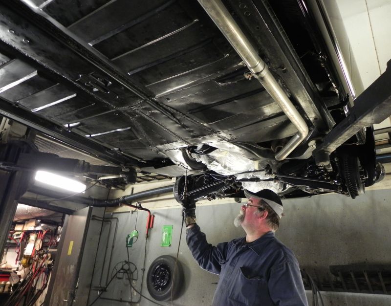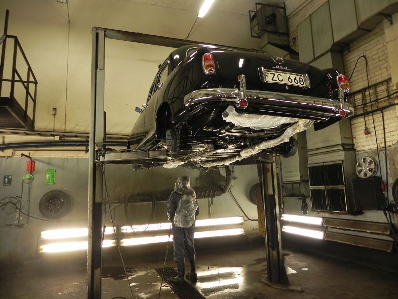 When the car was assembled and on the road, Rostskyddsmetoder in Stockholm did the final work; re-doing all the cavities with Dinitrol ML, washing the underbody and then covering it with Dinitrol's wax 4941/car. The owner of the company is owner of several Mercedes classics and have had a Ponton himself so he knows what he's doing. The work is to be checked/renewed every 5 years or after 15000 km.